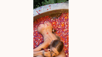 Sensually sucking his dick in a bath filled with roses 🍆 ❤️ Cum watch me lick his cock from top to bottom and satisfy him with my tongue 👅 💕 I love the way his cock feels in the back of my throat 😘