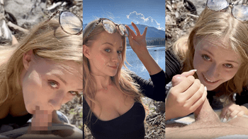 What's better than getting your cock sucked with a view?! 😍 Picture this: we drive up to this beautiful spot, just you and me... There's no one around so I start teasing your cock and feel it growing inside your pants as you play with by tits 😈 It gets me so HORNY seeing you this turned on, I just have to slip it in my mouth and have a taste! 👅 What happens next? Would you fuck me right here?